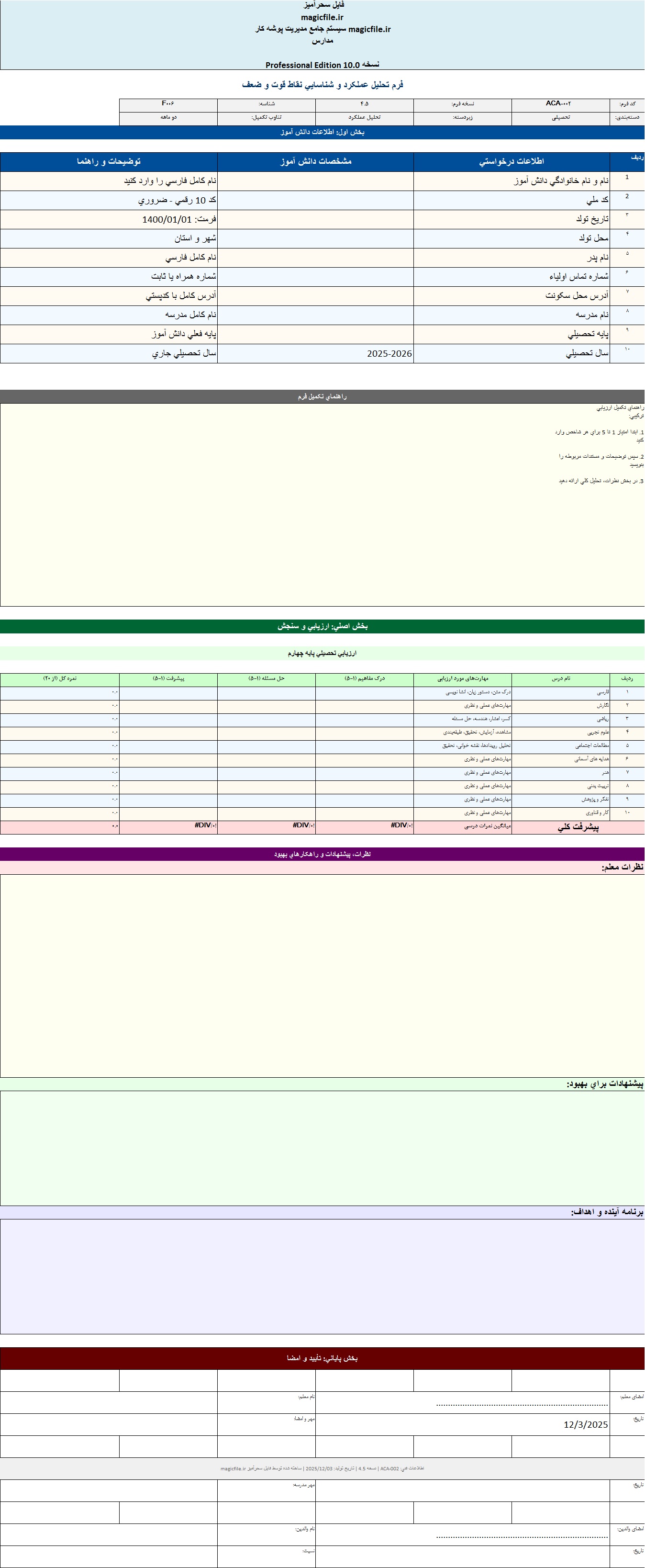 - فرم تحليل عملکرد و شناسايي نقاط قوت و ضعف